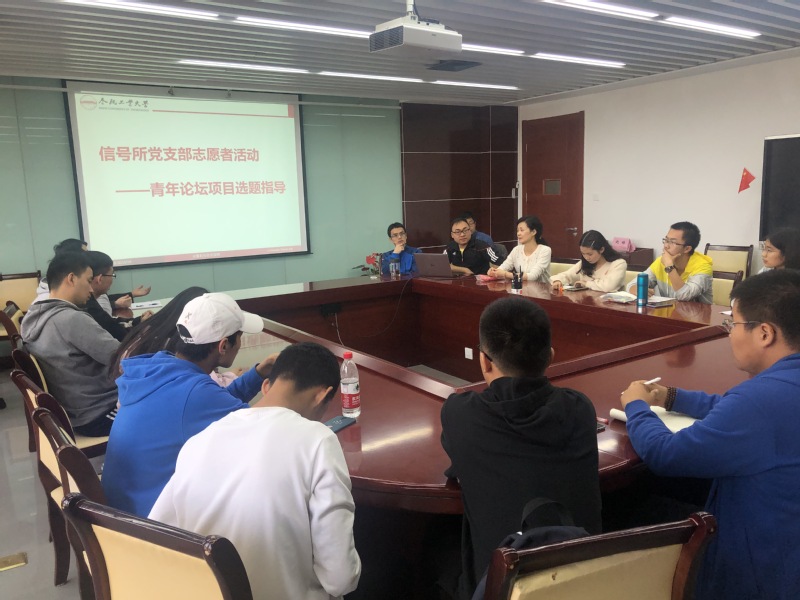 立德树人、能力导向、创新创业为核心的人才培养体系,培养学院本科生主动探索、创新协作的思维模式,2019年10月30日下午,在合肥工业大学翡翠科教楼A1106会议室,信号与信息处理研究所党支部组织开展了一次针对19级新生的青年论坛选题指导会。会议由金兢老师主持,信号所党支部张海燕、齐美彬、夏娜、翟琰、王煜洁、周芳、张小辉、陈斌老师等一线教职工参加选题指导会。