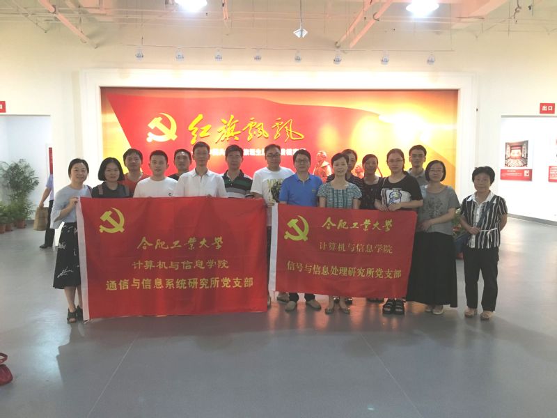 信号所党支部与通信所党支部于7月4日联合开展主题党日活动。当日,信号所与通信所的党员教职工集体参观由中国政协文史馆、安徽省政协办公厅主办的《红旗飘飘——中国共产党党旗诞生历程珍贵档案展》。